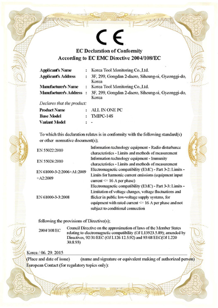 Tool Monitoring PC CE Certificate
